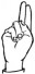 На ћирилици написано КЛАУДИЈЕ ГОВЕДАРИЦА састоји се из 18 слова [?]. Исписано ћириличном једноручном азбуком за глувонеме: